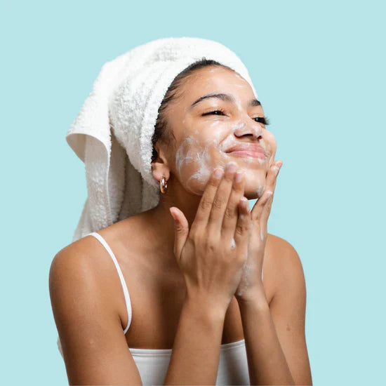 1-Start by gently cleansing your face to remove makeup, oil, and impurities — giving your skin a fresh, breathable base for treatment.